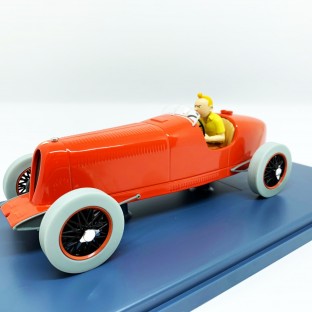 Colección a escala 1/24 de los coches de Las aventuras de Tintín. Esta maqueta corresponde al bólido rojo, marca Amilcar, de Los cigarros del faraón (página 58, viñeta B1). Lo conduce Tintín junto a Milú.
