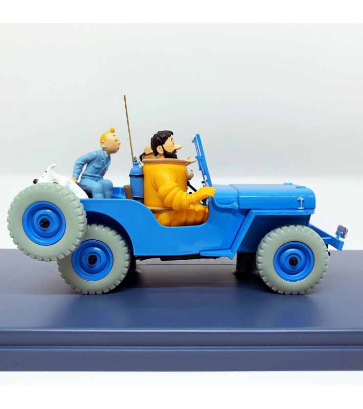 Colección a escala 1/24 de los coches de Las aventuras de Tintín. Esta maqueta es la del Jeep Willys CJ2A que aparece en la portada de Objetivo: La Luna. En el vehículo viajan Tintín, Milú, Haddock y Tornasol mientras se dirigen a ver por primera vez el cohete con el que viajaran al satélite terrestre.
