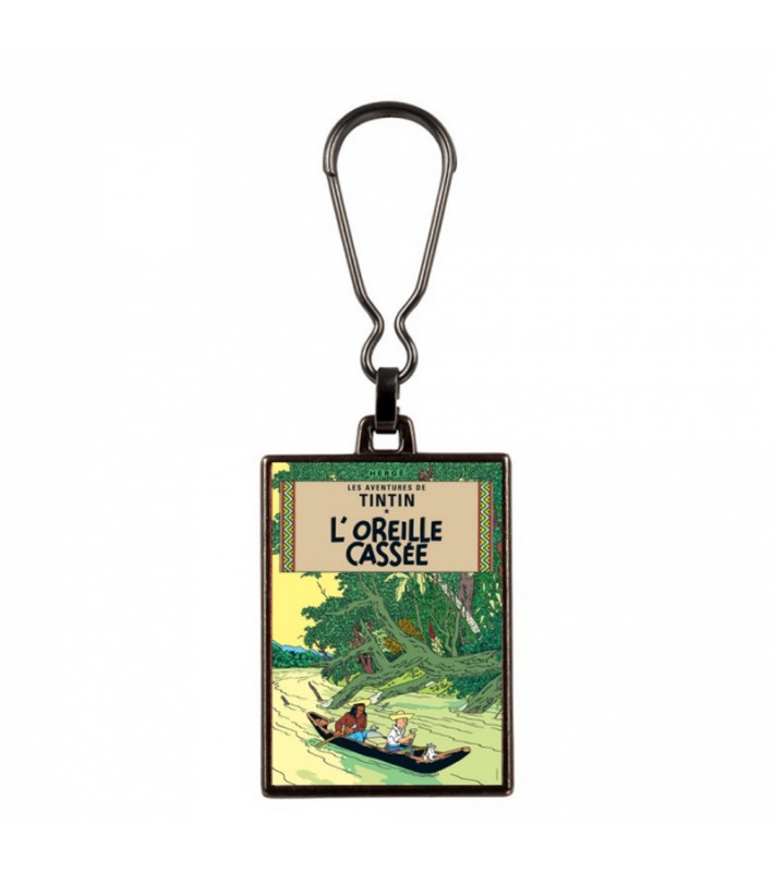Llavero metálico de la portada de La oreja rota.