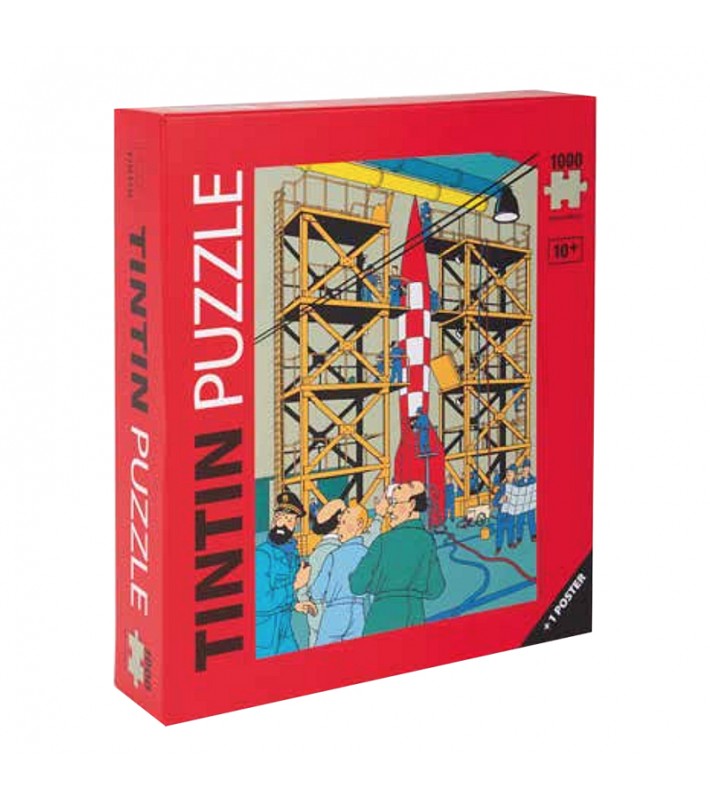 Rompecabezas del cohete XFLR6, prototipo previo al que llevará a Tintín hasta la Luna. Viñeta D2 página 15 de Objetivo: la Luna.