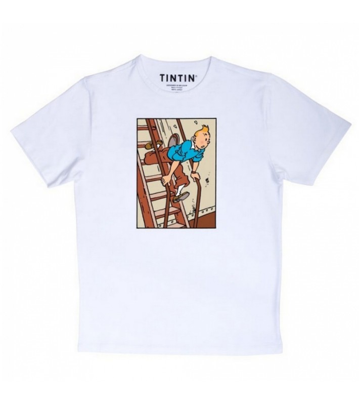 Esta camiseta de Tintín no es solo una prenda, es una invitación a la aventura. La ilustración, inspirada en el estilo inconfundible de Hergé, muestra a Tintín descendiendo unas escaleras con intención de ayudar al capitán Haddock.