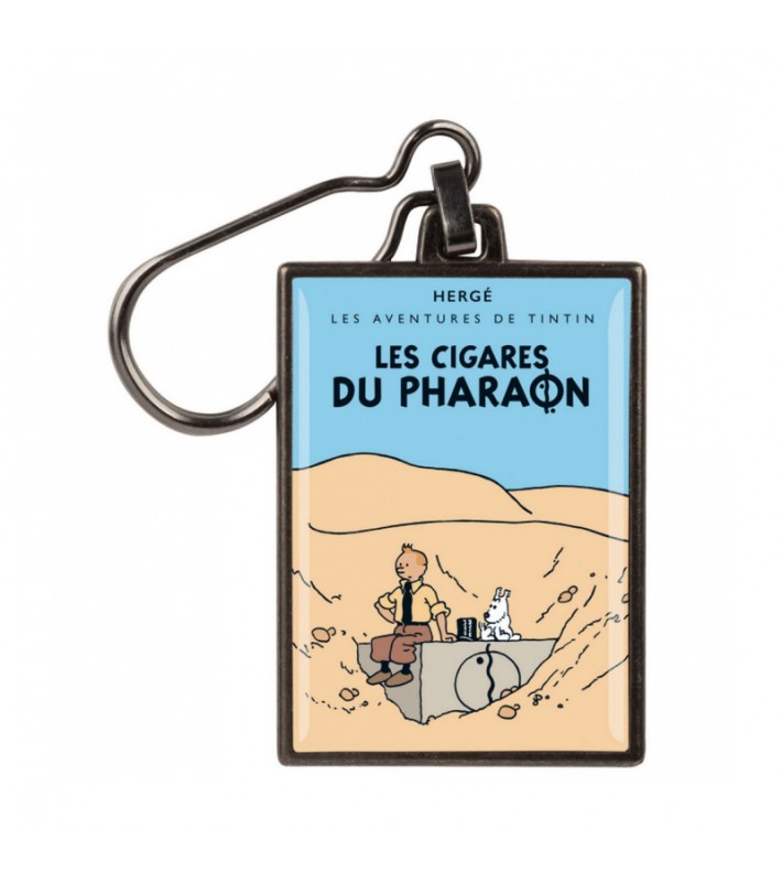 Llavero metálico de la portada de Los cigarros del faraón, versión facsímil coloreada.