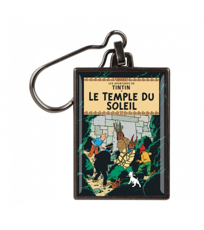 Llavero metálico de la portada de El templo del sol.