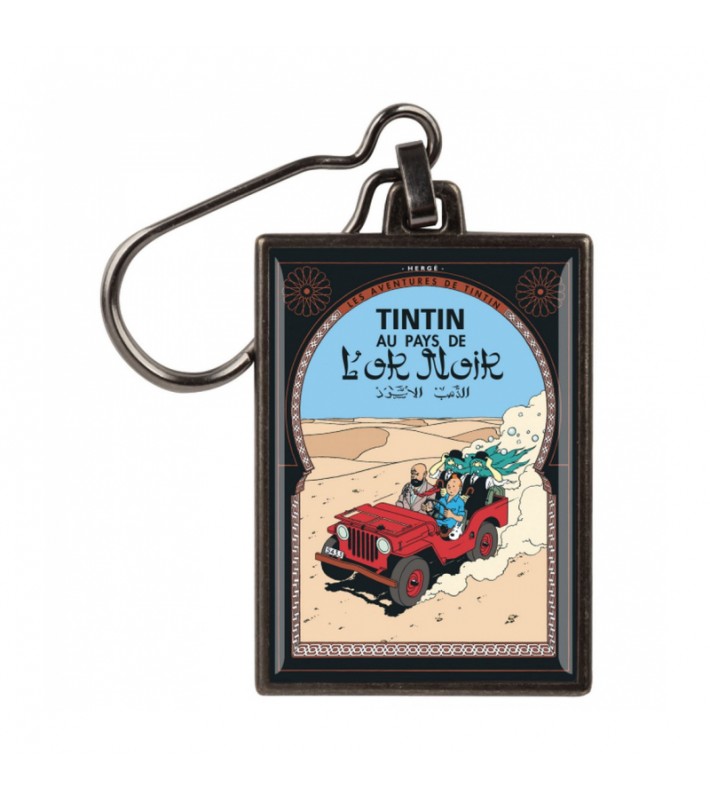 Llavero metálico de la portada de Tintín en el país del oro negro.